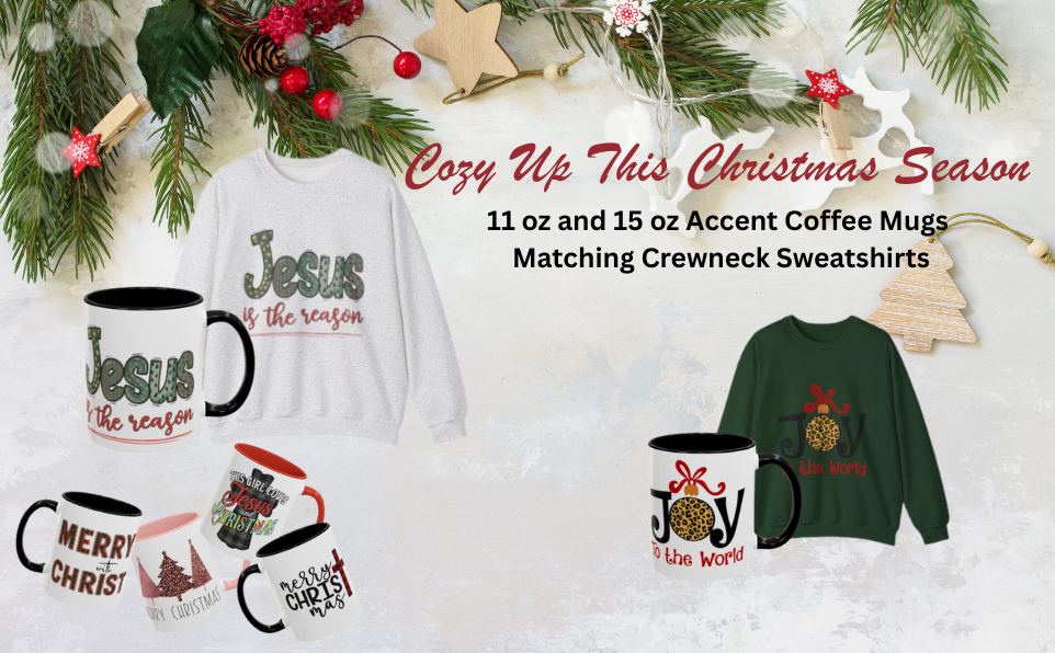 Jesus is the Reason for the Season @ Faith's Corner. Sit by a the fire dressed in a comfy, cozy Christmas sweatshirt and enjoy a steaming cup of cocoa in a festive Christmas mug.